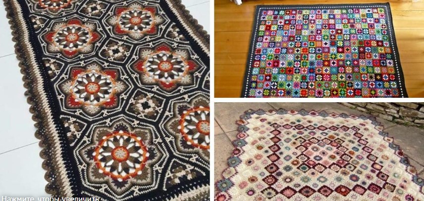 Очень много ковриков из отдельно связанных мотивов. В очередной раз восхищаюсь неистощимой фантазией рукодельниц. Мне нравятся все, честное слово!