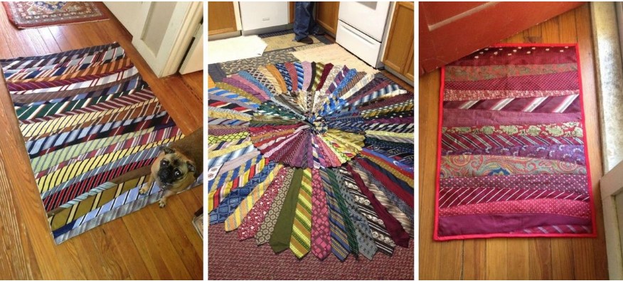Если ваш шкаф уже не вмещает вышедшие из моды галстуки, срочно сделайте из них коврик: и дверцы шкафа сможете закрыть, и интерьер преобразите необычным половичком.