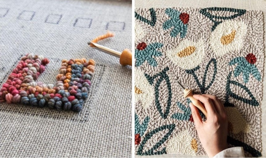Этапы петельной ковровой вышивки